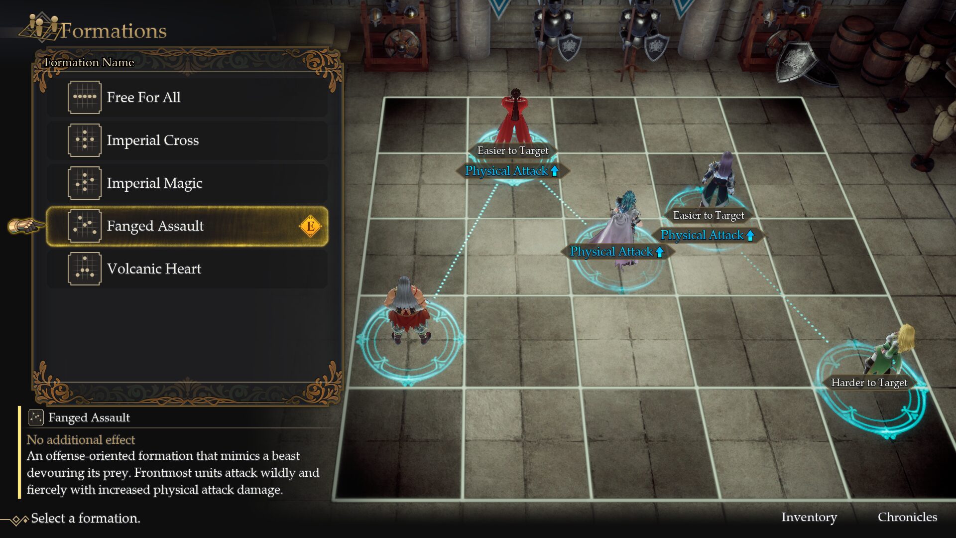 • Fanged Assault : Peut être appris lorsqu’un Mercenaire est nommé Empereur. L’unité la plus avancée voit sa puissance d’attaque physique augmentée, mais devient aussi plus facile à cibler par les ennemis.