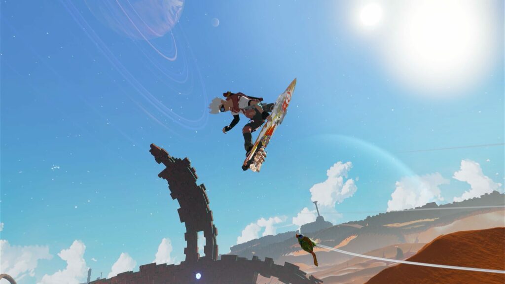 Après avoir reçu un mystérieux signal de détresse, vous vous lancerez dans une aventure audacieuse à travers un monde extraterrestre, découvrant les secrets cachés dans ses profondeurs. Au guidon de votre élégant Hoverboard, vous traverserez des paysages époustouflants remplis de structures extraterrestres, des sables brûlants aux eaux ondulantes, chacun mettant à l’épreuve vos talents de traversier.