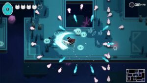 Pendant notre balade dans le royaume de l’au-delà, nous rencontrons régulièrement des créatures qui voudront nous barrer la route. Ces ennemis ont plusieurs patterns bien distincts que nous arrivons rapidement à comprendre. Le problème, c’est qu’ils sont parfois très nombreux et là, les combats prennent une tout autre dimension. Il nous faudra apprendre à donner des coups de balai sur nos adversaires sans recevoir de dégâts en retour. Et parfois, l’écran est rempli de projectiles qui feront perdre de la vie. Nous devons donc constamment être aux aguets pour ne pas être touché, que ce soit face à des ennemis « basiques » ou face à un boss.