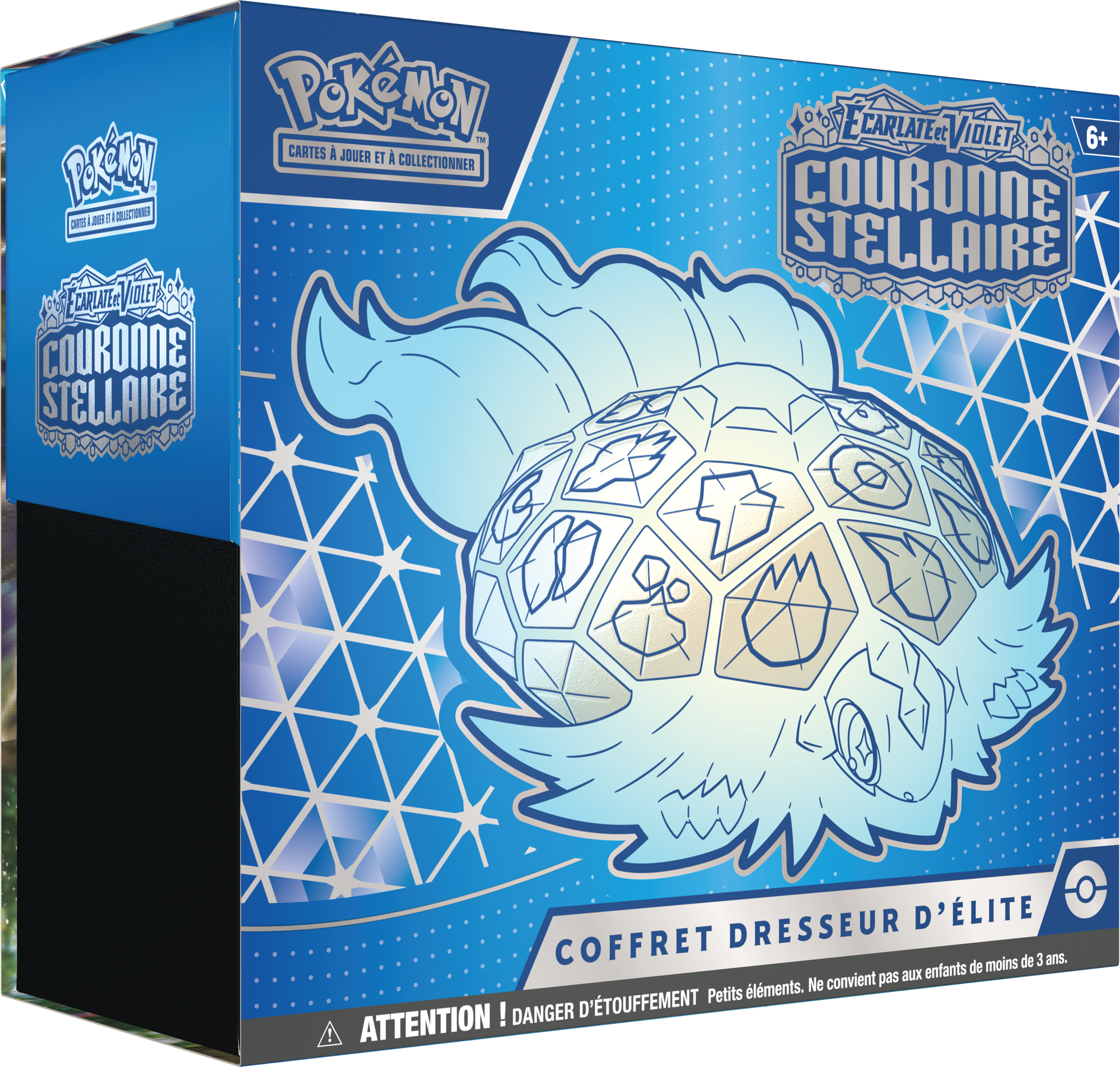 Les cartes de l’extension Écarlate et Violet – Couronne Stellaire sont maintenant disponibles dans les boosters, les Coffrets Dresseur d’élite et les collections spéciales dans les magasins participants du monde entier.