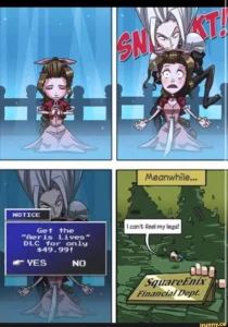 Dès la sortie du jeu, des rumeurs et des mythes ont circulé, alimentées par des magazines de jeux vidéo et des forums, prétendant qu’il existait des moyens secrets de sauver Aerith. Dans une époque où les forums en ligne, les magazines de jeux, et les guides officiels étaient souvent les seules sources d’informations et d’astuces. Certains affirmaient qu’il était possible de la ressusciter via des quêtes cachées ou des objets particuliers, mais aucun de ces éléments ne s’est avéré exact dans la version originale. Ces rumeurs ont persisté pendant des années, conduisant même à des hacks et mods créés par les fans pour réintégrer Aerith dans l’équipe après sa mort.