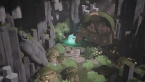 Les développeurs de Selfloss ont mis en place un choix de touches assez particulier. Les gâchettes servent plus que les quatre boutons de façade. C’est bizarre mais on s’y habitue assez vite. En revanche, l’utilisation de notre bâton avec le stick droit pose parfois des problèmes. Le jet de lumière est mal centré, et cela engendre des soucis de précision. A certains moments de jeu, il faut capturer l’essence d’un poisson. Cela consiste à l’aveugler avec notre jet de lumière, à le suivre et à donner un coup à un moment particulier. Cette manœuvre se déroule en barque et c’est compliqué, entre la difficulté de viser et le tempo à trouver pour réussir la capture. Ces moments prennent du temps et ne sont pas satisfaisants au final. On réussit sans trop savoir comment, mais cela reste un inconvénient mineur.