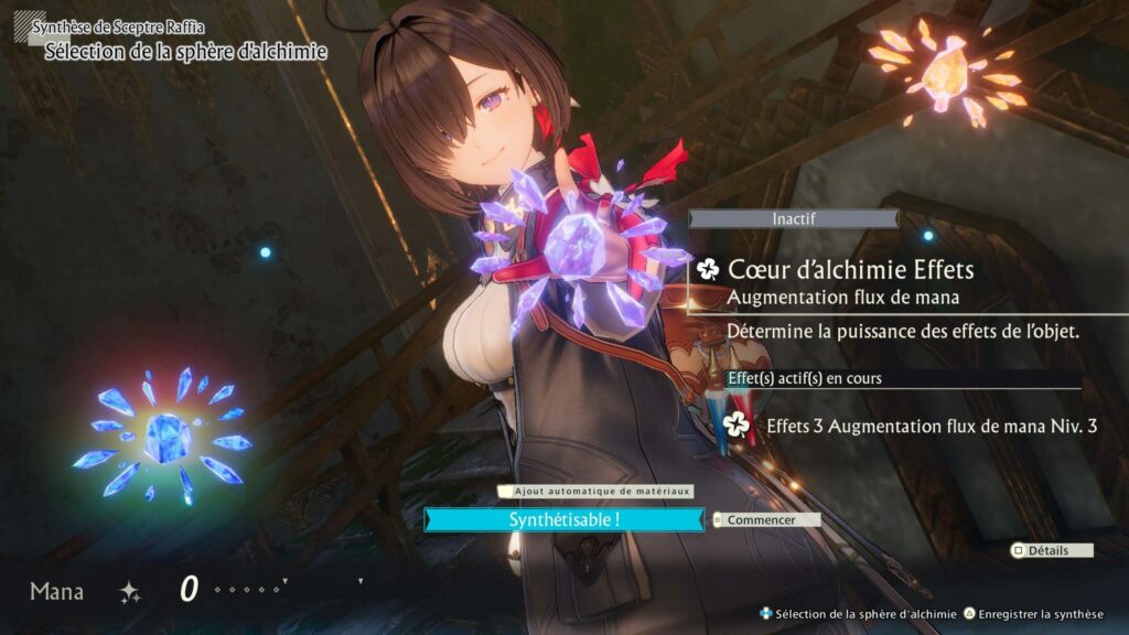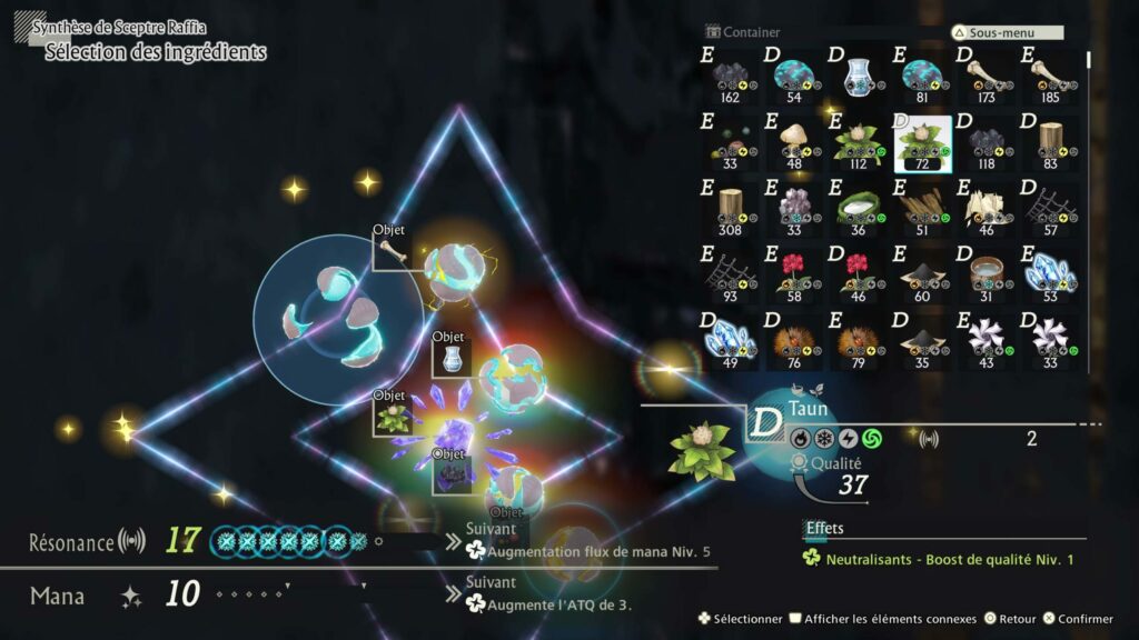 Pour se préparer à l’aventure qui les attend, les joueurs devront redécouvrir le système de synthèse caractéristique de la franchise Atelier sous une nouvelle forme en manipulant le « mana » pour créer de nouveaux objets utiles au combat ou à l’exploration. Pour créer des objets plus puissants, les joueurs devront maîtriser l’art de la « Résonance Synthèse » en ajoutant des ingrédients qui résonnent entre eux au « noyau d’alchimie » de la recette. La force de la résonance dépendra de la qualité des ingrédients sélectionnés.