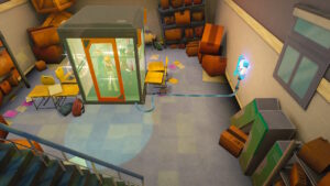 Au final, cela n’est pas très gênant, car même s’il nous est demandé de choisir une Spies en début de partie, nous sommes amenés à changer de personnage au cours de notre progression dans le niveau. En effet, seule telle ou telle espionne sera à même d’actionner un interrupteur d’une couleur spécifique (généralement identique à la couleur de sa combinaison) ou alors il faudra utiliser un gadget propre à une Spies pour progresser (par exemple, seul Sam sera à même de déplacer un véhicule qui bloque le chemin avec sa capacité de « hack »). Il faudra donc progresser furtivement (la plupart du temps en se baissant), pour éviter d’être vu par les méchants qui gardent les niveaux.