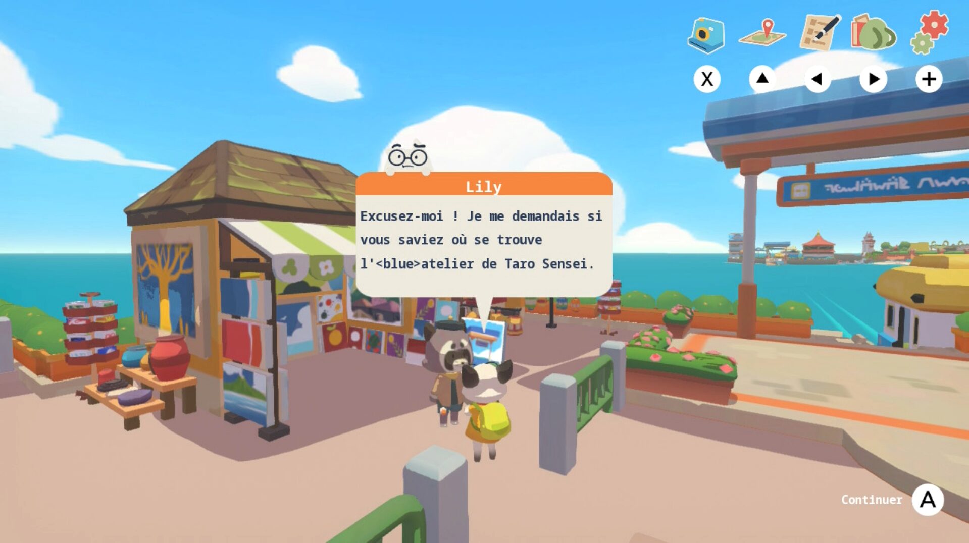 Par contre, on note quelques soucis d’adaptations rigolos, comme des icônes de touche déformée ou des phrases colorées qui semblent avoir des soucis de fin de balise. En revanche, Petit Island est parfaitement traduit en français.