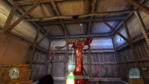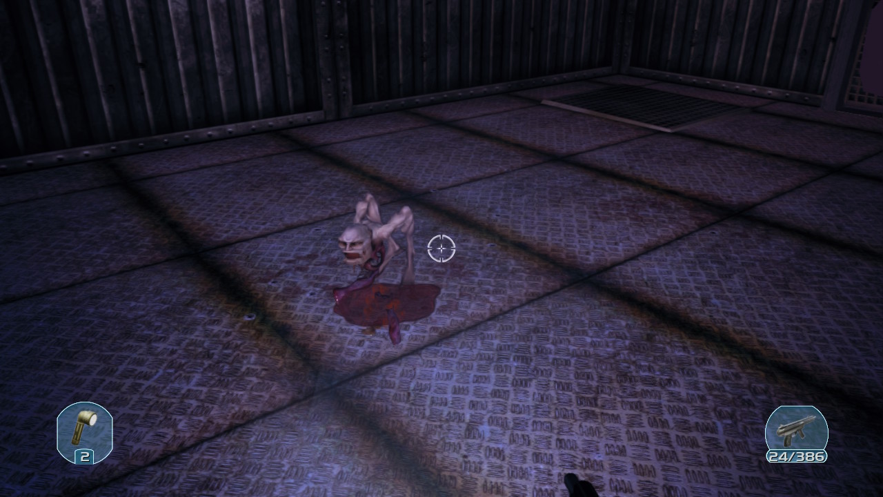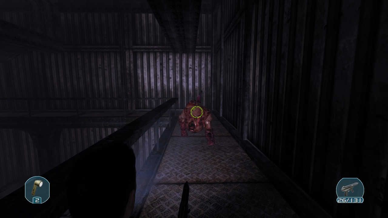 L’autre grosse amélioration du jeu est d’ordre graphique, les modèles 3D ont été revus à la hausse et les textures ont été entièrement refaites, donnant un aspect beaucoup plus net à l’ensemble, tout en ne laissant apparaître aucun aliasing. Cela se voit également sur l’aspect des choses, leur donnant un rendu plus gluant, plus organique et de fait, encore plus dégoutant ! Les créatures rencontrées sont d’ailleurs assez variées, têtes aux pattes d’araignées, gros mutants balaises, choses animales et aussi gros boss protéiformes rappelant la créature vue à la fin du film original.