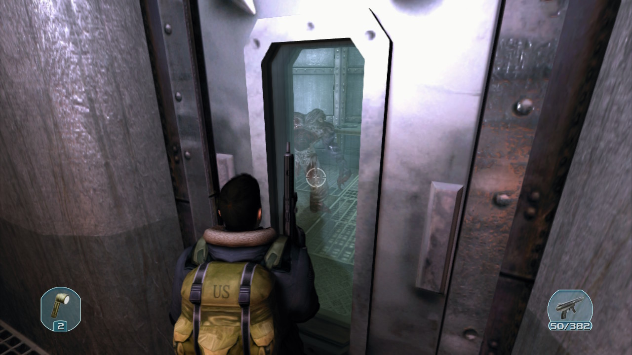 Concernant les ordres que vous pourrez donner, ceux-ci s’avèreront assez limités, mais suffisants par rapport à ce qu’il faut faire. Vous pourrez soit demander à vos équipiers de vous suivre, soit de rester sur place. Gardez toutefois en tête que le plus utile restera l’ingénieur, indispensable pour ouvrir certaines portes, il s’avère même que sa mort prématurée dans certaines zones vous obligera à recommencer depuis le dernier point de sauvegarde (où il était encore vivant) … Mais de manière générale, l’IA (et surtout la précision) de vos équipiers est plutôt bonne. Vous pourrez leur laisser une arme sans souci, quitte même à être désarmé, ils font de très bons gardes du corps et vous pourrez dans tous les cas récupérer armes et munitions s’ils meurent. Le seul petit regret dans tout ça, c’est le côté « jetable » de vos équipiers ; même si vous faites le maximum pour les garder avec vous tout au long du niveau, il arrivera un moment (scripté) où ils ne seront plus à vos côtés (soit à cause d’une mort par transformation, soit avec une mort par explosion ou encore une simple disparition sans autre explication).