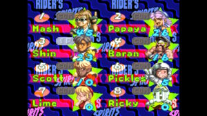 Développé à l’origine par Genki, Rider’s Spirits, de son vrai nom « Bike Daisuki ! Hashiriya Tamashii – Rider’s Spirits » (à vos souhaits !), s’inspire énormément de Super Mario Kart. D’ailleurs, il partageait avec le jeu de Nintendo la puce DSP-1 qui permet de tirer le meilleur parti de la Super Nintendo. Cette version eShop est développée par Shinyuden et publiée par Masaya Games, qui s’était déjà chargé du jeu originel, et par Ratalaika Games qui n’est pas un développeur inconnu sur Switch puisqu’il s’est déjà occupé de porter plusieurs titres sur la console hybride de Nintendo comme par exemple Garlic.