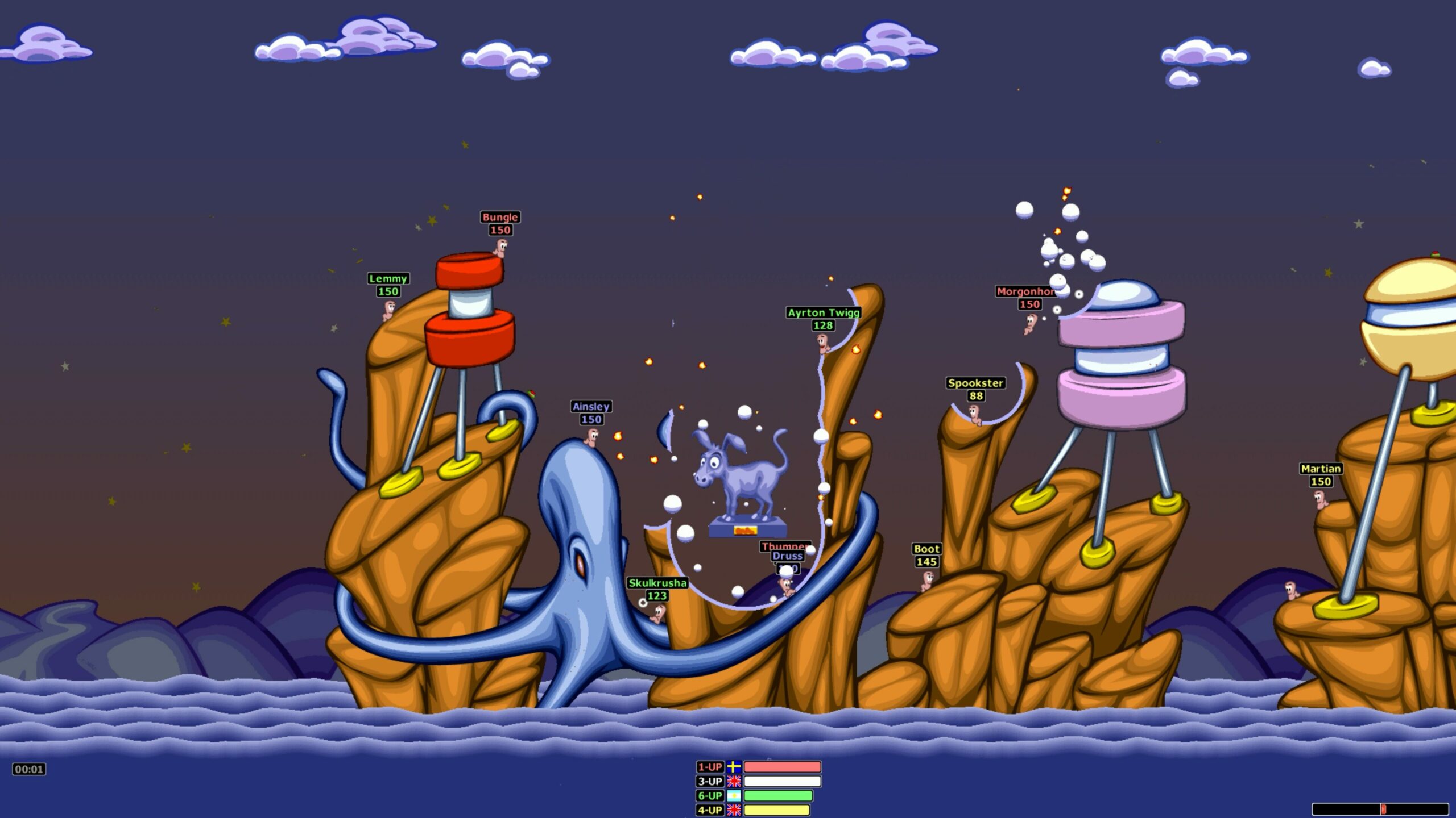 Worms Armageddon : Anniversary Edition, du studio Team 17, est la réédition d’un jeu sorti en 1999 à l’occasion de son 25e anniversaire en 2024. Il est le troisième épisode d’une série de jeux qui a pris naissance en 1995 avec Worms premier du nom, sur Amiga, ensuite porté sur plusieurs machines. Il s’agit d’un jeu de guerre au tour par tour où les joueurs incarnent de petits lombrics se disputant un bout de territoire à grands coups de bazooka, batte de baseball, moutons volants ou sainte grenade.