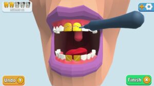 Dans Dentist Bling, vous incarnez un dentiste chargé de soigner les dents de patients fictifs. Votre mission consiste à retirer les caries, remplacer les dents abîmées, poser des prothèses en or, ou même ajouter des pierres précieuses pour embellir le sourire de vos patients. Chaque action réussie vous rapporte des points et de l’argent, que vous pouvez utiliser pour débloquer des équipements ou améliorer votre clinique.