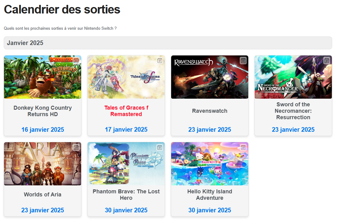 Pour tout vous dire, avant nous utilisions un module spécialement pour le calendrier, ça multipliait le travail de notre côté et nous n’étions pas forcement satisfaits de l’affichage, un jeu par ligne, ça nous obligeait à beaucoup trop scroller pour avoir l’information. Nous avons donc profité de la création des fiches de jeux, pour réutiliser la date de disponibilité afin de centraliser l’information, de plus vous pourrez maintenant atteindre directement une fiche depuis ce calendrier, quand on vous dit que la fiche est un élément central !