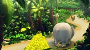 Les graphismes se montrent assez qualitatifs sur Nintendo Switch, bien qu’ils reprennent l’essence du jeu originel. Les couleurs sont vives, les environnements variés embarquent le joueur dans différentes ambiances, avec un effet de profondeur très agréable. Le bestiaire est cohérent avec le milieu côtoyé, et offre la mise en lumière d’une cocasse faune locale qui se montre très revancharde (mais pas toujours très fut-fut) ! Et tout cela, pour notre plus grand bonheur… il faut bien admettre qu’il n’est pas si fréquent de voguer sur un cachalot !