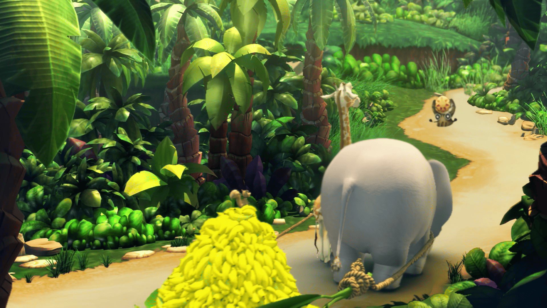 Donkey Kong Country Returns HD s’ouvre sur une charmante cinématique qui permet de poser les bases de son histoire : l’épaisse réserve de bananes a été dérobée par une mystérieuse bande de masques (la tribu Tiki Tak), visiblement possédés et capables d’hypnotiser toutes sortes d’animaux sauvages. Ces malotrus ont bien essayé sur ce cher Donkey Kong mais sans succès… notre gorille préféré ne se laisse pas amadouer au premier regard ! Commence alors une course folle pour tenter de récupérer un maximum de bananes et sauver les animaux malmenés au passage. Vous n’aimez pas trop les bananes… ? Mais que faites-vous donc parmi nous ! Vous en êtes friands ? Aaaaaah… voilà qui est mieux… car vous allez en manger de la banana !