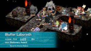 Ensuite, une fois que nous avons enfin nos personnages, ceux-ci vont alors pouvoir se mouvoir dans un rayon autour d’eux. Les mouvements sont plutôt libres, vous pouvez sauter aussi pour arriver sur une zone séparée par du vide ou encore monter sur des éléments en hauteur. Ensuite, vous pourrez attaquer et choisir librement qui attaquer dans votre portée en fonction de l’attaque choisie. On est donc sur un placement libre, contrairement justement à Disgaea de chez NiS aussi.