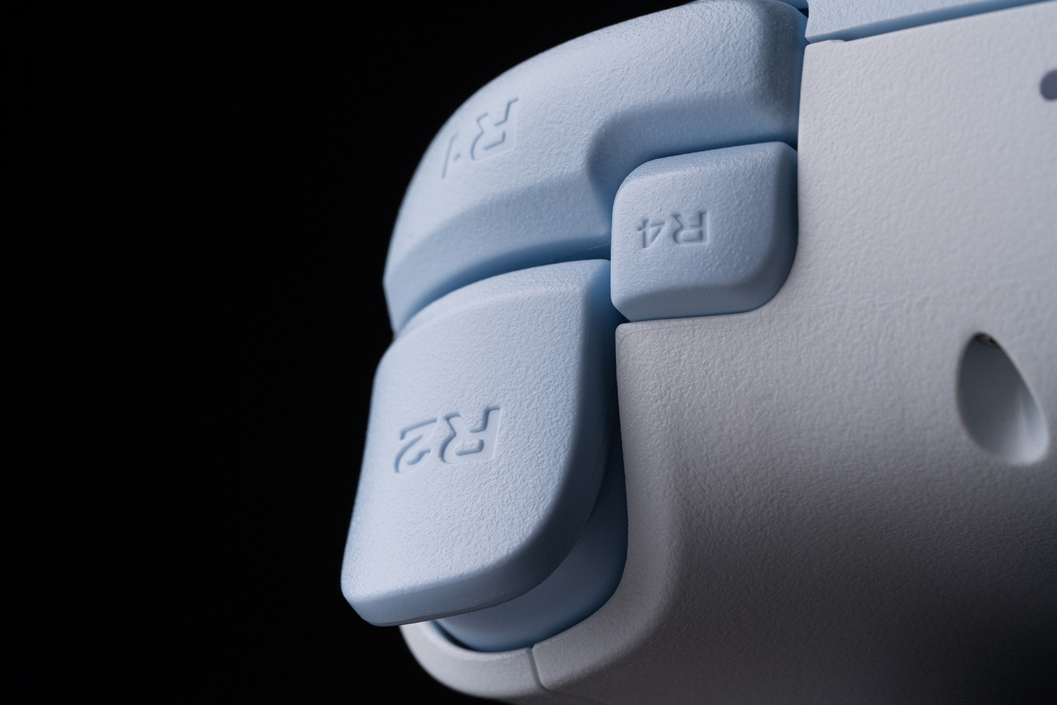 Grande nouveauté, deux gâchettes supplémentaires, les R4 et L4, font leur apparition sur le dessus de la manette. Elles agissent comme des bumpers reconfigurables, permettant aux joueurs de personnaliser leur disposition des touches sans passer par un logiciel. De plus, toute la structure de la manette – boutons, croix directionnelle et gâchettes – a été recalibrée pour une sensation plus fluide et précise, avec un retour tactile à la fois léger et réactif.