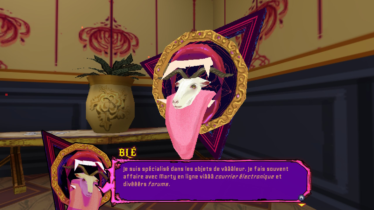L’utilisation de votre troisième œil vous permettra aussi de dévoiler certaines zones ou objets, qui sont invisibles à deux yeux… Il est également utilisé pour la résolution de certaines énigmes, mais dont le niveau de difficulté n’est pas très élevé. Vous pourrez également compter sur Blé, une tête de chèvre sortant d’une bouche tirant la langue flottante (ça ne s’invente pas !) pour améliorer les capacités de Michelle (augmentation de sa barre de vie) et de ses armes (augmentation de la puissance et du chargeur). Bien évidemment, cela n’est pas gratuit et il faudra échanger vos Waouz (la monnaie des démons) pour obtenir ces améliorations.