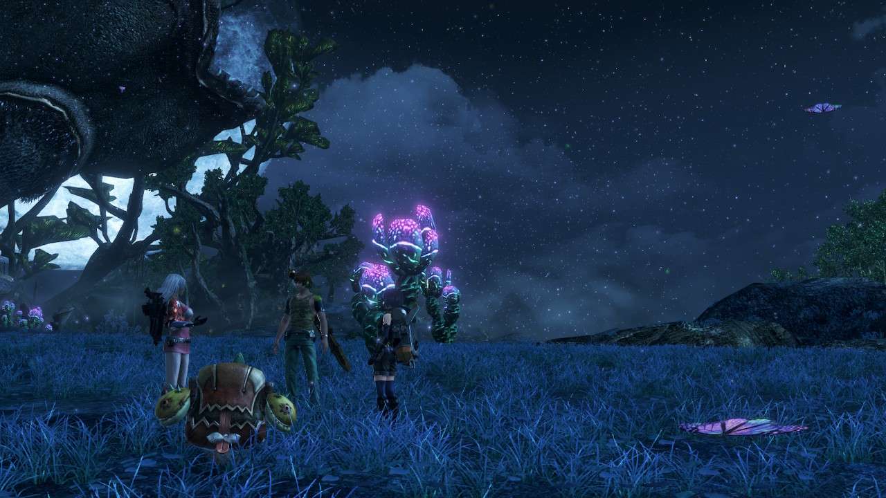 Xenoblade Chronicles X: Definitive Edition reste sans conteste le plus ambitieux et le plus beau jeu Xenoblade de Monolith Soft à ce jour. Certains regrettent probablement même son statut d’ultime jeu Nintendo Switch en ayant préféré le voir sur la prochaine plate-forme. Dans le détail, les jeux les plus récents et leur rendu empreint de cel-shading bien plus inspiré des animés japonais peuvent sembler plus beaux. Puis les personnages bien mieux animés, expressifs et les cinématiques de Xenoblade Chronicles 3 restent incroyables à regarder. Bien que tout soit plus réaliste, fin et joli, nous pouvons voir les tares en animations et dans les cinématiques avec des personnages plus raides ou statiques témoignant simplement d’un travail vieux de 10 ans. Le léger manque de détail peut s’expliquer sur un monde bien moins cloisonné et une proposition en total Open World. Pourtant, justement en tant qu’Open World, Monolith Soft fournit un travail très impressionnant et joli pour de la Nintendo Switch avec ce Xenoblade Chronicles X.
