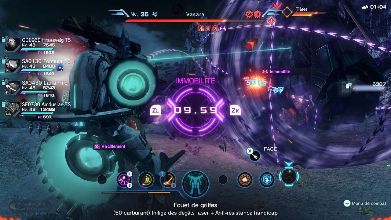 Pourtant, les quelques textes parfois lourds ne sont certainement pas suffisants pour saisir toute la richesse et la subtilité de gameplay du jeu. L’interface de jeu est bien plus fournie en informations que n’importe quel opus numéroté, puis il faut dire qu’une partie des informations étaient disponibles en direct sur notre écran Wii U GamePad. Cette absence implique une adaptation de cette fonctionnalité via un menu à part sur cette version Switch. Cela fonctionne bien, la carte et les informations liées à Mira s’affichent très bien et sont d’ailleurs bien plus lisibles sur cette Definitive Edition aussi bien en TV qu’en portable. L’interface globale a été mieux pensée et les informations sont plus lisibles et mieux organisées que le jeu original mais la densité d’informations est telle qu’il est impossible de refaire totalement le jeu. Ainsi, Xenoblade Chronicles X: Definitive Edition reste relativement lourd. La navigation et la gestion dans les menus restent fastidieuses. Le bordel est tel que n’importe qui se perd dans l’avalanche d’informations.