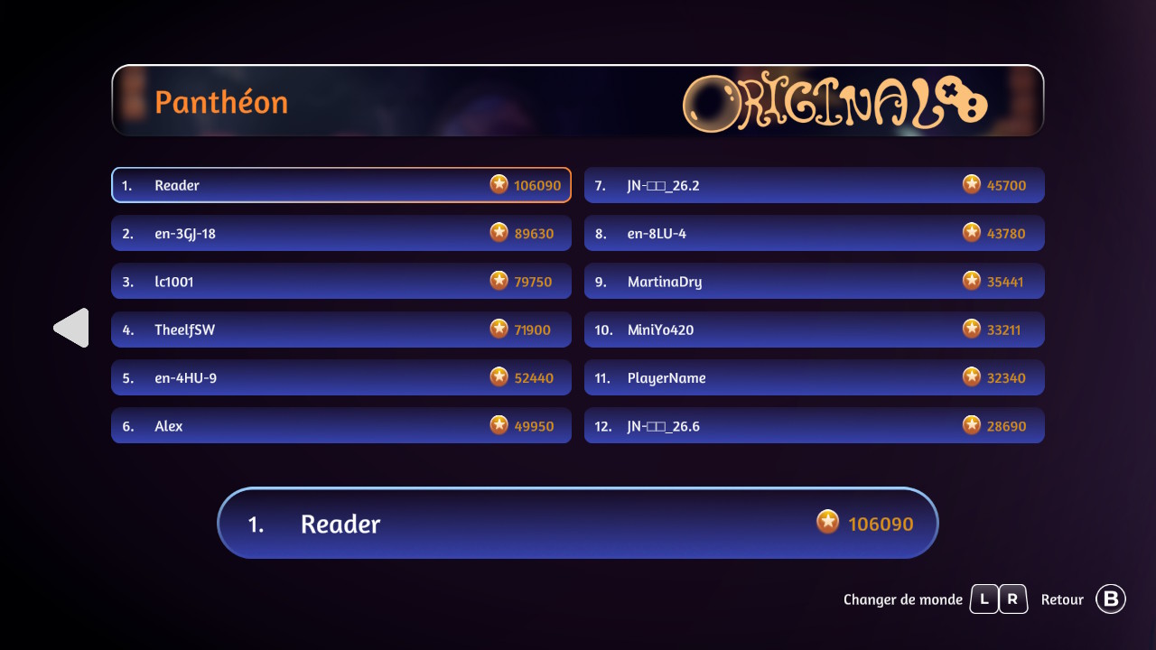 Mais les défis ne s’arrêtent pas là, car les développeurs ont également intégré un « panthéon » qui permet de comparer ses résultats avec ceux d’autres joueurs en ligne ! Un tableau des scores mondial en quelque sorte, une façon de briller comme dans les salles d’arcade mais face à des adversaires du monde entier… Une bonne façon aussi de trouver de la motivation à se replonger dans le jeu pour conserver sa place à la tête du classement. Croyez-nous, les places sont chères et entièrement méritées !