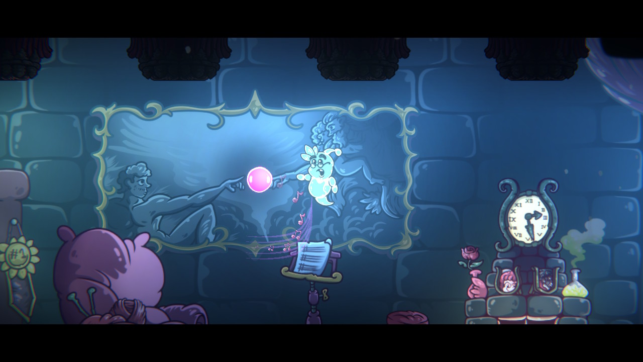 Pour le reste, c’est clairement un sans-faute. Visuellement, nous sommes sous le charme du design de Heinrich et du travail effectué sur les décors et les environnements. Encore une fois, ce n’est pas un simple Remaster, mais bel et bien un Remake avec de nombreux ajouts ! Le son n’est pas en reste, et la musique d’ambiance est de qualité, comme certains bruitages (on pense par exemple aux cris du singe dans un certain niveau) qui s’avèrent parfaits pour immerger le joueur dans cette quête, assez originale, qui vise à pousser une bulle hors d’un château (mais aussi à retrouver son amour perdu…).