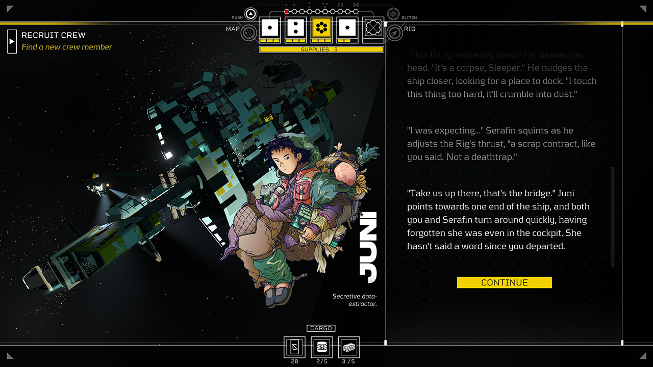 Grande nouveauté du jeu : la gestion d’un équipage. Vous pouvez recruter des personnages au fil de vos explorations. Chacun a ses propres stats et peut être utilisé pour compléter vos lacunes. Mais ce ne sont pas que des outils : chaque équipier a ses dilemmes, ses loyautés, ses trahisons. Il vous faudra choisir qui accompagner, qui rejeter, qui croire.