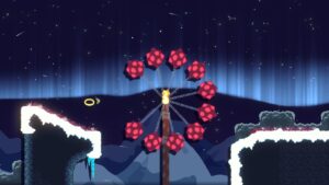 Le style visuel de Aureole est en 2D, très coloré, avec une esthétique de dessin animé. Les environnements célestes sont lumineux, avec un bon contraste entre les zones de danger et les zones sûres. Les animations sont simples mais lisibles, ce qui est essentiel pour un jeu basé sur la précision. Les ennemis sont peu nombreux, mais bien intégrés dans le décor. L’interface est claire, et les repères visuels sont nets, ce qui facilite la lecture des niveaux.