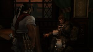 Quant aux affrontements maritimes, ils sont de manière générale beaucoup trop répétitifs et longuets. Vous aurez une série de navires à dégommer à coups de canon, vous-même étant pris pour cible par ces maudits navires. Si vous prenez trop de temps pour cibler correctement, vous prendrez rapidement une salve d’obus dans la face, et verrez votre santé s’émousser comme la lame du capitaine. Et vous aurez en plus de petites barques remplies de méchants pirates, qui viendront se hisser dans votre bateau pour s’inviter à la fête. Il devient parfois difficile de jongler entre les canons et la visée, et d’éviter les tirs en même temps que vous menez les combats. Une fois l’ensemble des bateaux réduits en miettes, alors la mission est terminée. Nous n’avons pas trouvé ces passages très fun, pour être honnêtes.