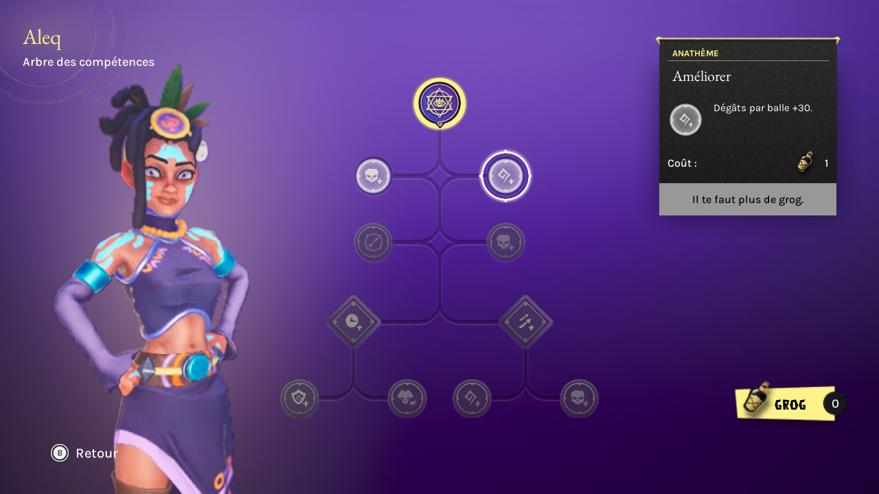 Comme dirait Édouard Baer : “La vie, c’est d’abord des rencontres…”, vous allez donc faire la connaissance de personnages à qui rendre service, et qui rejoindront parfois votre équipage. Chacun d’eux possède une compétence que vous allez pouvoir utiliser avec votre personnage. Et ils disposent même d’un arbre de compétences que vous pourrez améliorer avec des bouteilles de grog. Cela peut être un sort offensif ou une amélioration de soutien (effectuer plus de dégâts avec le pistolet, par exemple).