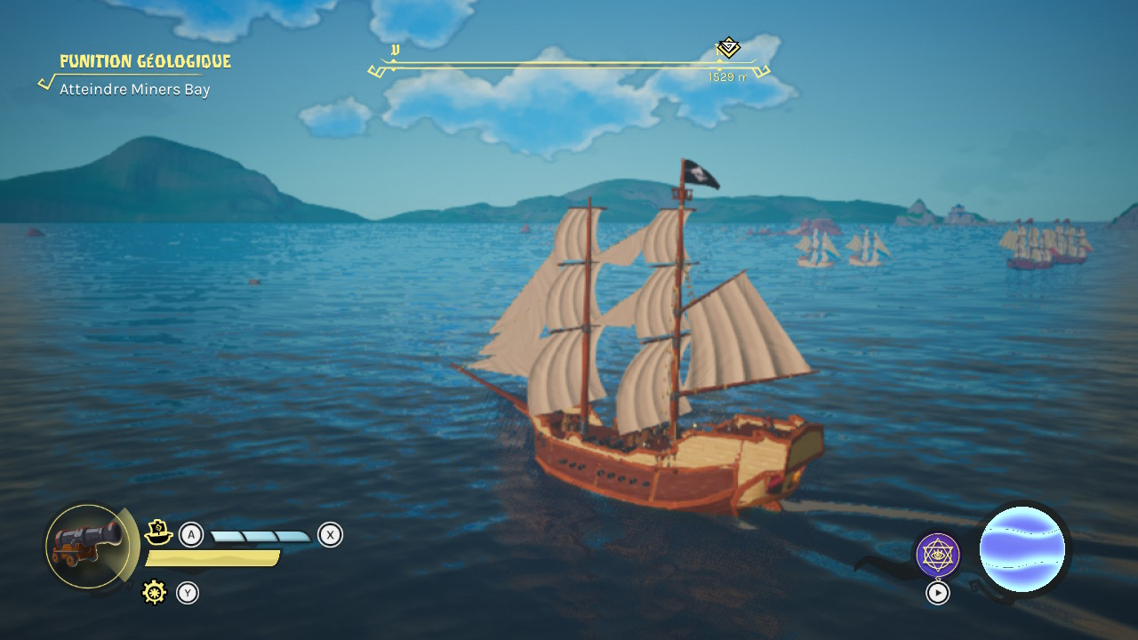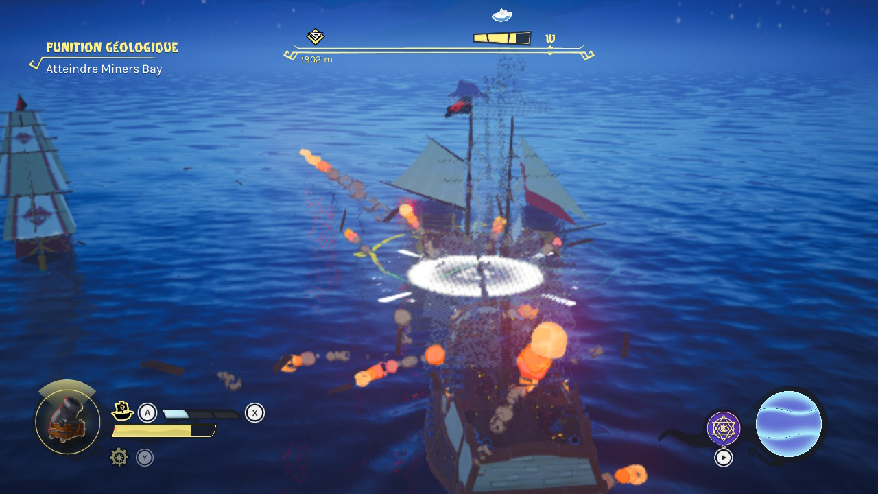 En mer, les batailles navales sont plutôt dynamiques. Le joueur peut utiliser les canons de son navire pour affronter des bateaux ennemis, et des créatures marines comme le Kraken ou les Mégalodons. Contrairement à Sea of Thieves, les phases d’abordage de navires adverses sont beaucoup plus simples. Une fois un bateau ennemi réduit en charpie, on appuie sur une touche pour l’aborder, le bateau disparaît et nous octroie directement un butin. Vous restez donc à bord de votre navire et continuez votre route. La navigation est assez lente, mais heureusement facilitée par des points de téléportation activables sur les îles, permettant de réduire les temps de trajet.