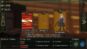 Les axes d’amélioration de nos armes sont au nombre de six : la puissance de tir, la cadence de tir, la capacité du chargeur, le recul, la vitesse de rechargement et la vitesse de refroidissement. Entre chaque jour de combat, il va falloir piocher dans nos économies pour avoir un meilleur armement.