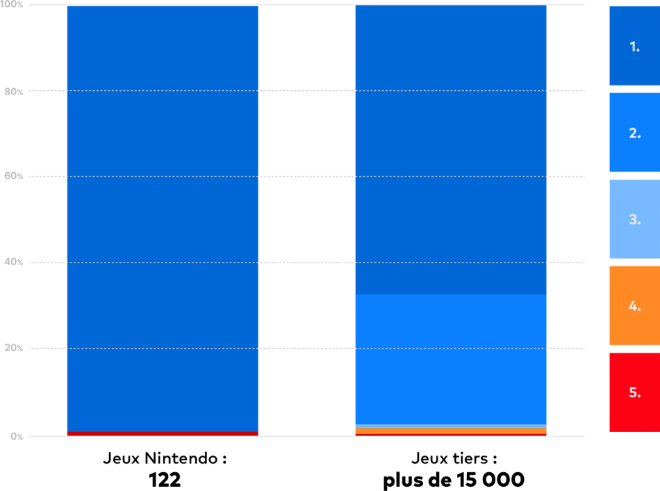 Nintendo propose un graphique, plutôt clair, permettant de voir rapidement le nombre de jeux compatibles. Les jeux sont classés en 5 catégories: