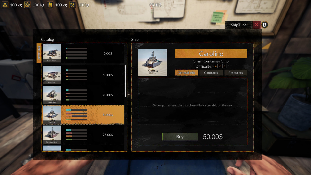 Le cycle de jeu dans Ship Graveyard Simulator 2 repose sur une boucle simple, potentiellement addictive, mais qui devient très vite répétitive. Tout commence par la commande d’une épave depuis votre ordinateur portable. Vous choisissez un navire à démanteler, chacun proposant trois contrats à remplir, avec des objectifs de collecte spécifiques qui offrent des récompenses croissantes en cas de succès.