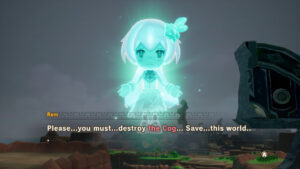 De notre côté, nous sommes à bord d’un bateau qui vogue paisiblement sur les flots. Édouard, un scientifique assez plaisantin au look rétro mais très chic, et sa mascotte Merlebleu, un oiseau d’apparence pas très fut-fut, nous invitent à découvrir les lieux et notamment les vestiges d’un dragon qui trône en plein milieu du navire. Ce dernier nous interpelle. Se pourrait-il qu’il soit encore vivant ? Tandis que nous sommes dans l’expectative sur ce reptile géant, nous sommes attaqués par une créature gigantesque qui tente de nous détruire. Malgré tous les efforts de notre équipage pour lui échapper, l’ennemi se rapproche. Alors que tout semblait perdu, notre mystérieux dragon s’éveille soudainement et nous vient en aide. Nous grimpons rapidement sur son dos avec Édouard, toujours accompagné par sa petite mascotte. Le combat est féroce. Malheureusement, la vilaine bestiole a le dessus et nous sommes violemment projetés dans un monde inconnu tandis qu’un symbole se loge dans le ciel.