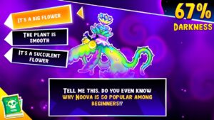 Des boss ponctuent également l’aventure, généralement à la fin d’un chapitre. Ces confrontations surviennent lorsqu’un personnage refuse d’accepter son sort et se laisse consumer par son côté obscur. S’ensuit une joute verbale où l’entité obscure vous interroge sur les raisons de son refus. Vous disposez de trois réponses, mais trop d’erreurs entraîneront l’augmentation de la jauge des ténèbres de son cœur. Si cette jauge atteint 100 %, c’est un game over et un retour au début du combat de boss. Attention, certaines questions sont des pièges avec trois réponses incorrectes ; la bonne réponse sera alors de réfuter la question. Il est très important de bien relire votre bloc-notes pour éviter de répondre à côté, puisque vous y trouverez une réponse à toutes les questions. Il est également possible d’y aller à l’aveugle, car il reste relativement facile de deviner ce qu’il faut répondre, mais cela devient moins vrai au fur et à mesure que l’aventure progresse.