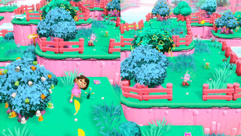 Au cours de l’aventure, les joueurs pourront croiser la route de Tico, Isa, Benny et du Grand Poulet Rouge, qui aideront tous Dora à sauver l’Arbre Magique des Alebrijes. Dans l’esprit de la franchise, les mots et les expressions en espagnol qui parsèment le jeu permettent aux enfants d’apprendre en s’amusant. Les parents et les enfants peuvent vivre une merveilleuse aventure en famille et apprendre ensemble grâce au mode coopératif pour 2 joueurs !
