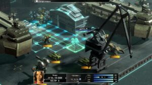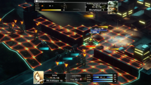 Le système de points d’action, hérité de Front Mission 2, est également conservé. Chaque mouvement, attaque ou activation de compétence consomme des AP, qu’il faut gérer avec minutie pour tirer le meilleur parti de chaque tour. Entre deux missions, le simulateur permet de refaire des affrontements pour engranger de l’expérience et des fonds, pratique pour peaufiner ses stratégies ou tester de nouvelles configurations.