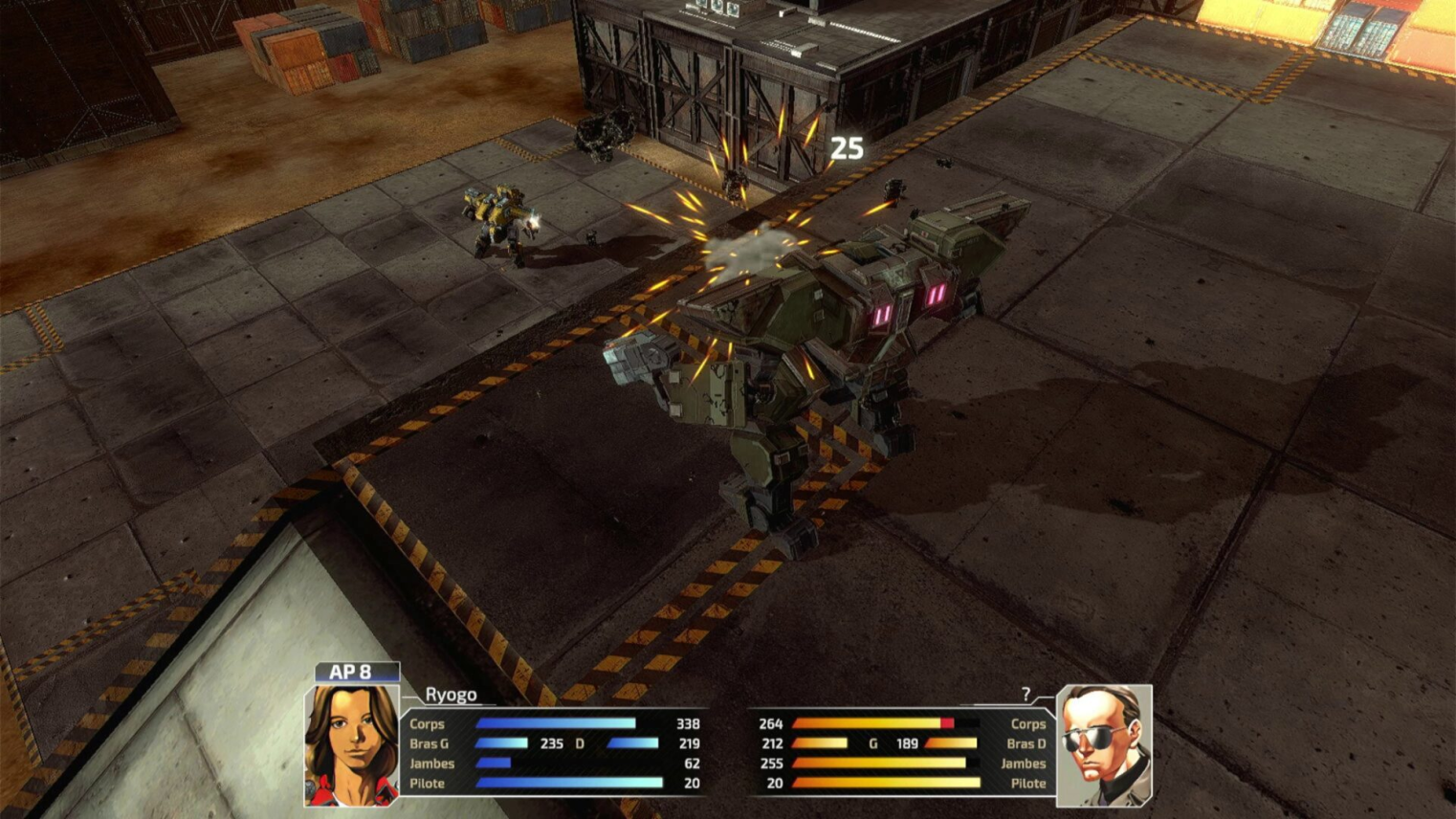 Une mécanique introduite avec cet opus, et toujours présente, est la vulnérabilité des pilotes. Ceux-ci disposent de leurs propres points de vie et peuvent être blessés ou éjectés de leur Wanzer en cas d’impact violent ou de destruction du cockpit. Une fois au sol, ils peuvent encore agir, bien que très fragiles, ou tenter de capturer un Wanzer ennemi laissé à l’abandon. Cet aspect tactique offre une alternative stratégique précieuse pour récupérer des machines adverses et leur équipement sans frais.