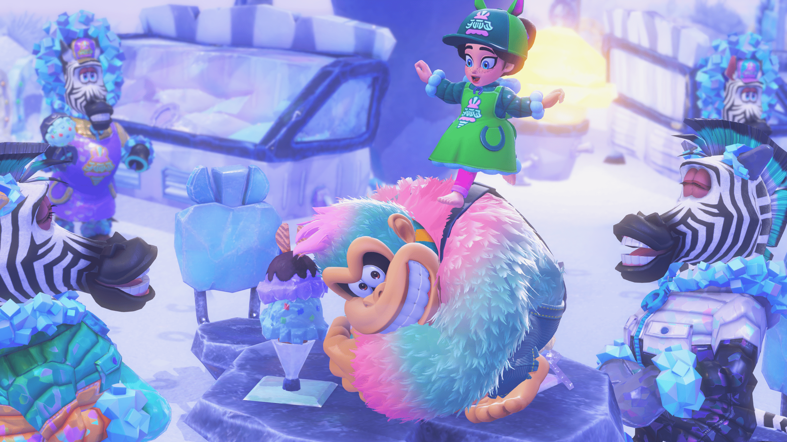 Après environ une heure de jeu, la vérité (déjà connue si vous avez assisté au Nintendo Direct) éclate : ce mystérieux caillou n’est autre que Pauline, prisonnière d’un sceau du Voïd. Libérée, elle retrouve sa forme humaine, mais conserve ses pouvoirs. Sa voix reste l’élément clé pour briser le Voïd, et elle devient une alliée précieuse dans votre descente. Car oui, l’objectif n’est pas de remonter à la surface, mais bien de plonger plus profondément, jusqu’au cœur de la planète. C’est là que réside la clé pour exaucer vos vœux… et faire payer Void Kong pour ses méfaits. Il a répandu le Voïd et volé toutes les bananes, il devra répondre de ses actes.