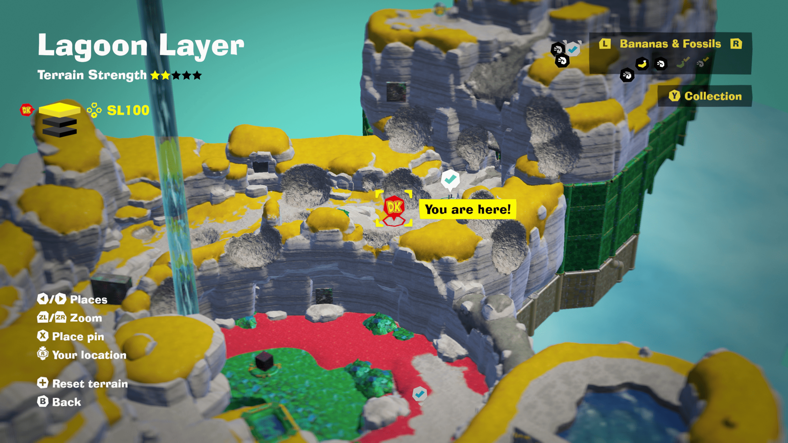 Pour tirer pleinement parti de ces trouvailles, la carte de la strate, accessible à tout moment, devient vite un outil indispensable. Elle permet de localiser DK par rapport aux objectifs, de se téléporter vers les points de contrôle déjà découverts (à condition de rester dans la même strate), et d’afficher ou masquer certains éléments grâce à une légende claire, permettant de rendre l’exploration bien plus méthodique. Et si vous avez trop détruit, une option depuis la carte permet de réinitialiser le terrain à son état d’origine, sans coût ni malus.