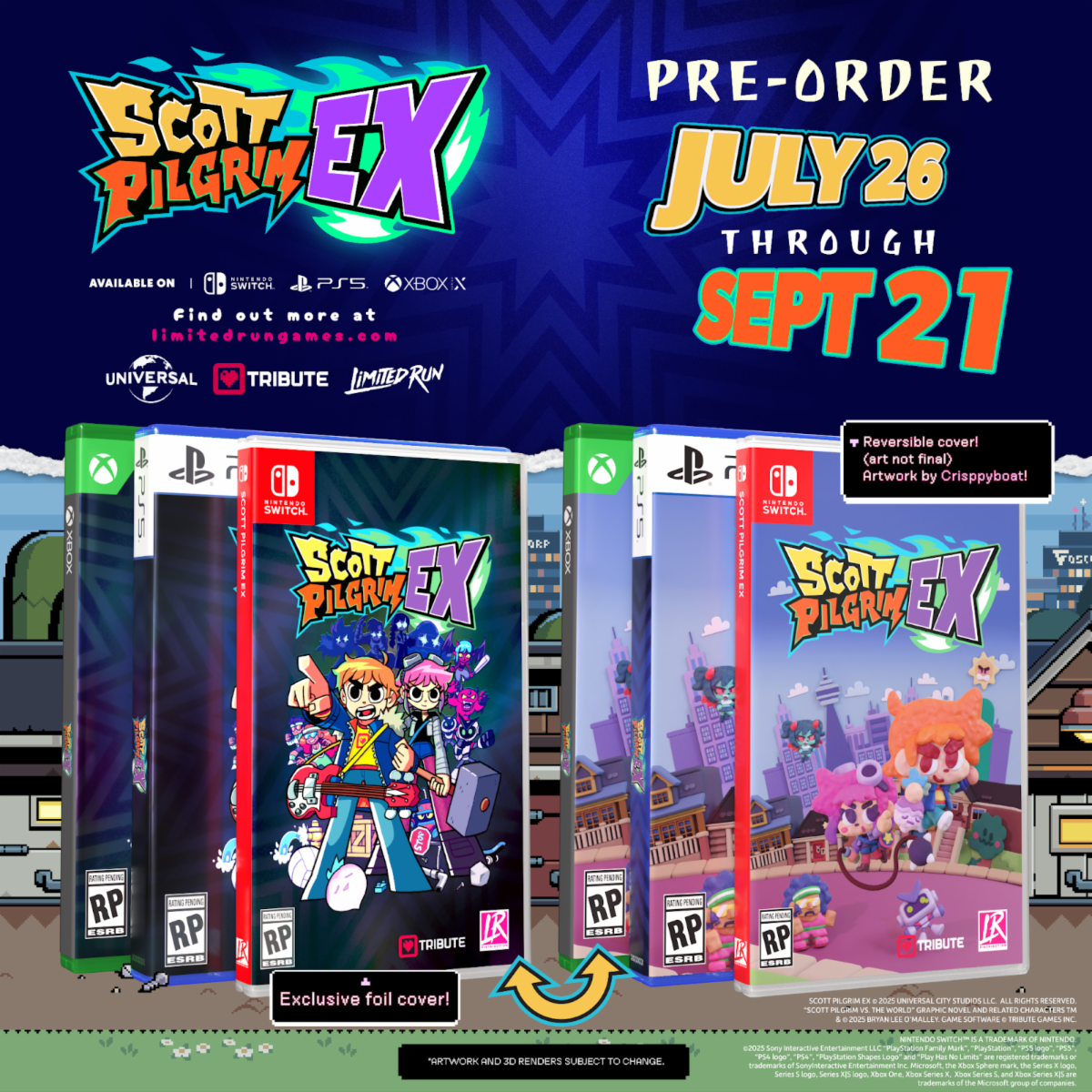 C’est officiel : Scott Pilgrim EX, le nouveau beat’em up issu de l’univers culte de Bryan Lee O’Malley, arrivera en édition physique sur Nintendo Switch grâce à Limited Run Games. Les fans peuvent dès maintenant précommander l’une des trois éditions proposées, chacune regorgeant de contenus exclusifs et de clins d’œil à la franchise. En parallèle, un nouveau trailer de gameplay a été diffusé, dévoilant les premières minutes de l’aventure aux côtés de Scott et Ramona dans un Toronto pixelisé revisité.
