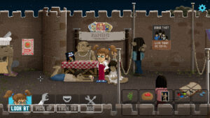 Le titre est très facile à appréhender dans ses mécaniques de base. Pour déplacer l’héroïne, il suffit de cliquer là où vous voulez qu’elle marche, via le curseur à l’écran. Pour interagir avec des objets, il suffit également de cliquer dessus. En bas de l’écran, il y a un bouton « regarder », un « ramasser », un autre pour « parler à » et un dernier pour « utiliser ». Selon la façon dont vous voulez interagir avec quelque chose ou quelqu’un, il vous suffit de cliquer sur l’une de ces options avant l’interaction.