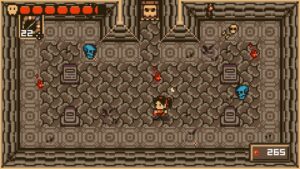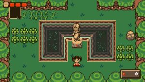 Le système de combat constitue malheureusement l’un des points faibles majeurs du jeu. Sarissa, l’héroïne, ne peut attaquer que dans les quatre directions cardinales, ce qui rend les affrontements imprécis et frustrants, surtout contre des ennemis rapides ou en mouvement constant. L’absence de bouclier accentue ce déséquilibre, obligeant à engager les combats au corps-à-corps avec une lance à la portée étonnamment courte. La gestion de l’équipement est elle aussi laborieuse : changer d’objet, comme équiper les gants pour soulever des rochers ou l’arc pour atteindre un interrupteur, nécessite de passer constamment par le menu, ce qui nuit au rythme de jeu. La difficulté générale est mal équilibrée. Le premier boss, une nuée de coléoptères ultra-agressifs, s’avère brutalement difficile, tandis que le reste de l’aventure devient très facile une fois quelques objets clés obtenus.