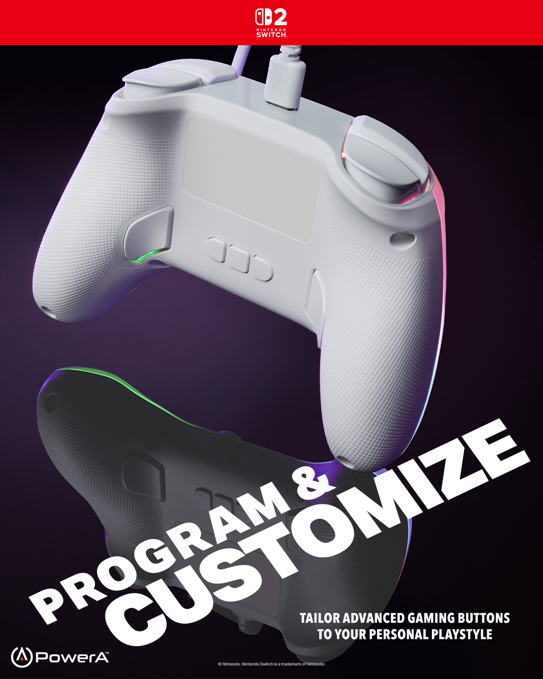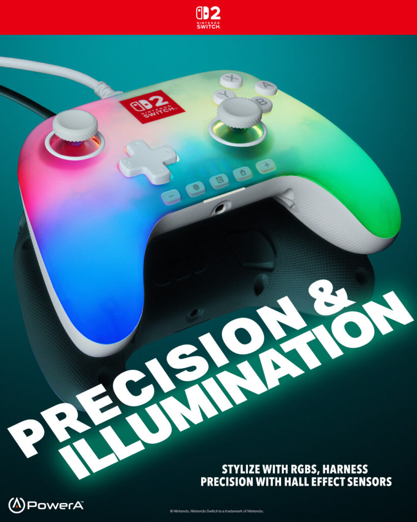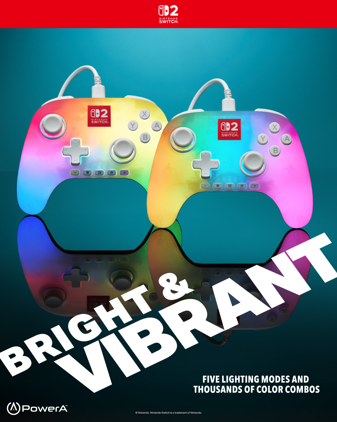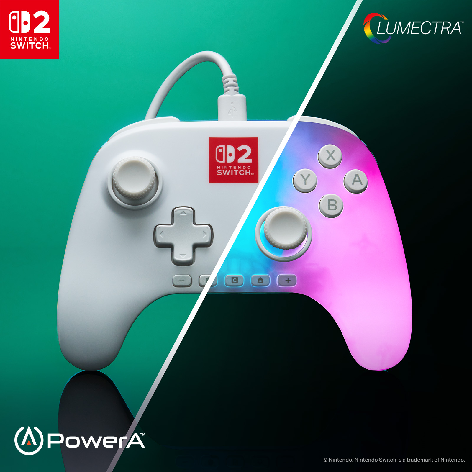 Le spécialiste des accessoires sous licence officielle PowerA dévoile aujourd’hui une nouvelle itération de sa manette filaire Advantage, cette fois conçue spécialement pour la Nintendo Switch 2. Et pour la première fois, la technologie Lumectra™ RGB — véritable signature lumineuse de la marque — s’invite sur la nouvelle génération de consoles Nintendo.