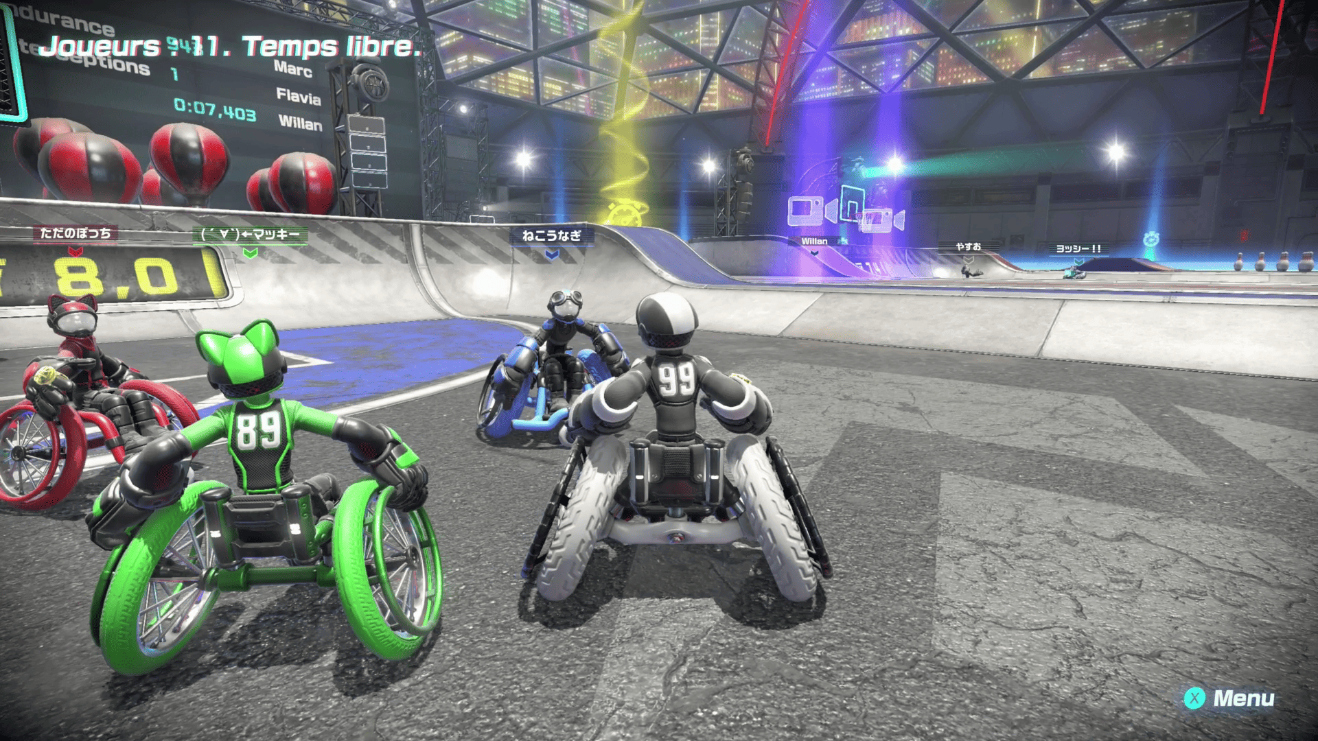 Le concept est pourtant génial, avec des mouvements fluides basés sur une des nouvelles fonctionnalités de la Nintendo Switch 2. Nous avons un plaisir à rouler, et même tout bêtement à applaudir avec nos Joy-Con 2 voire même à taper dans les mains de nos coéquipiers.