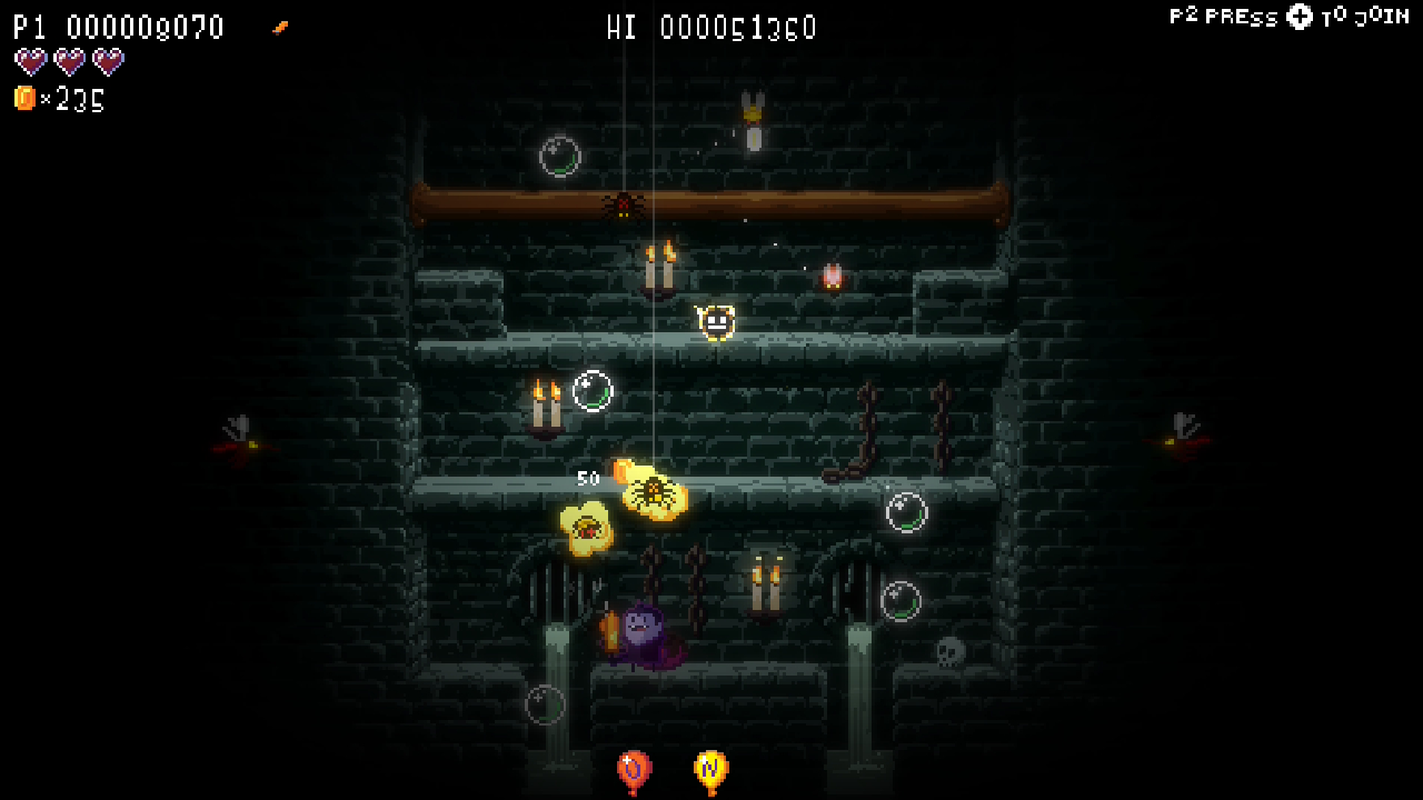 L’ambiance musicale est relativement sympa sans être transcendante. Encore une fois, certaines pistes seront meilleures que d’autres. Par contre, c’est du côté des bruitages que nous avons apprécié le rendu, notamment dans la récupération des pièces qui, en quelques notes, parviennent à chatouiller notre mémoire de joueur sur le premier Mario ou Bubble Bobble (ceux qui savent comprendront). Dans tous les cas, le titre transpire d’un amour pour l’arcade à l’ancienne et le fait savoir durant toute la durée du jeu.