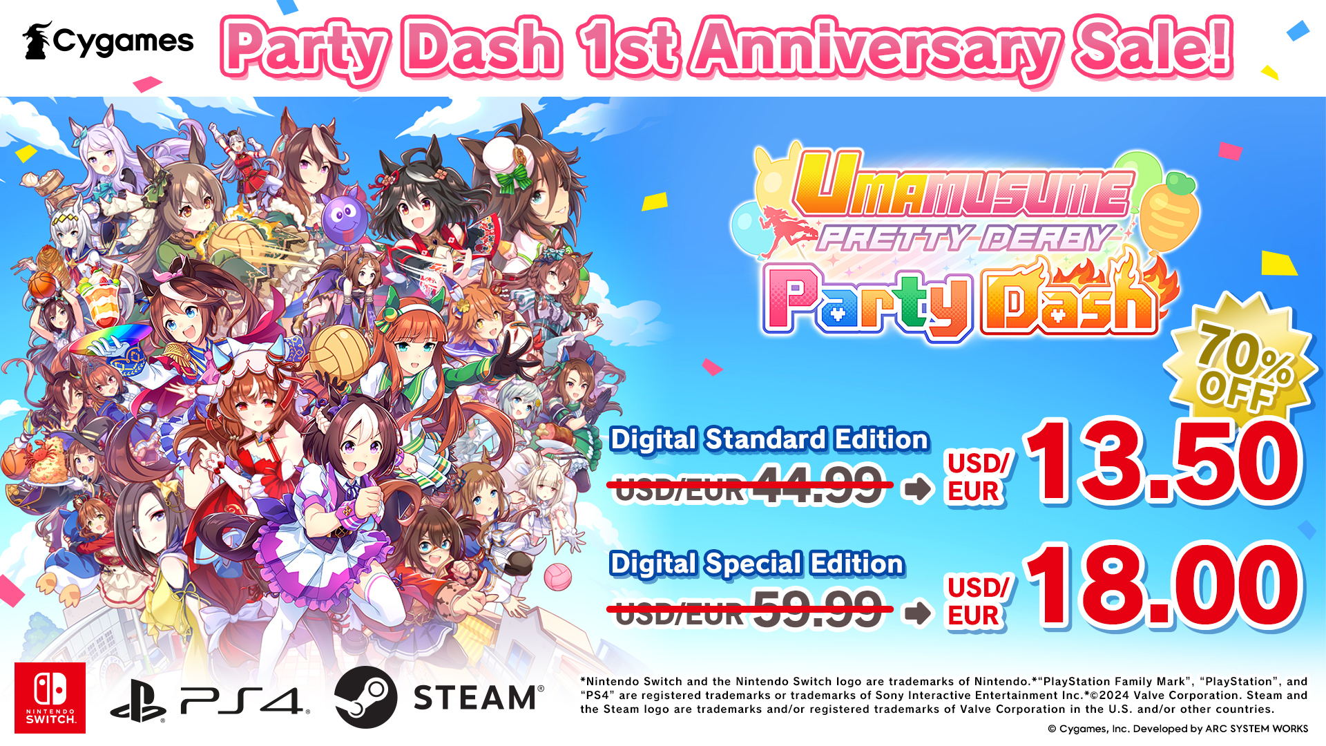 Pour célébrer le premier anniversaire du jeu, les éditions Standard et Special d’Umamusume: Pretty Derby – Party Dash sont désormais en vente avec 70 % de réduction**.