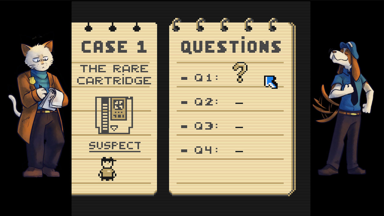 La boucle de jeu est simple mais efficace. L’exploration où Waffles se déplace dans de petites zones pour chercher des indices cachés, disséminés dans l’environnement. Puis la collecte d’indices, chaque découverte est automatiquement ajoutée à son bloc-notes, son principal outil d’enquête. L’interrogatoire, cœur du gameplay du jeu où vous questionnerez différents suspects, pour obtenir de nouvelles informations, en présentant les bons indices au bon moment, pour faire avancer l’affaire. Et enfin, la résolution, une fois toutes les pistes épuisées, Waffles doit faire un rapport à son partenaire, Pancakes. Il est alors confronté à une série de questions à choix multiples pour résumer ses découvertes où il faudra répondre correctement à toutes les questions pour passer à l’affaire suivante.