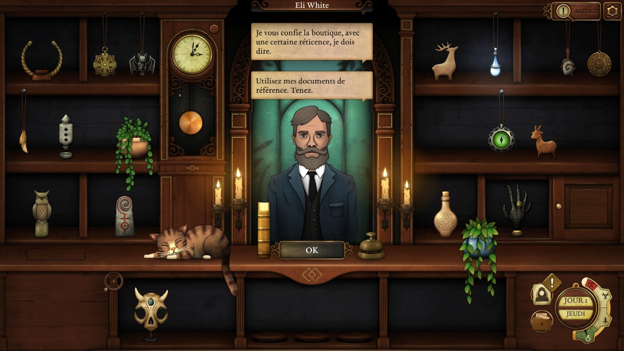 Nous incarnons l’assistant (ce n’est jamais précisé, nous le supposons juste) d’Eli White, le gérant de l’antiquaire Strange Antiquities. Alors que ce dernier est appelé pour une affaire urgente, nous nous retrouvons à gérer la boutique.