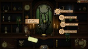Nous hésitons souvent entre plusieurs bibelots et nous devrons inspecter ces derniers pour trouver l’objet demandé. Nous pourrons alors découvrir leur composition, les sensations au toucher qu’ils procurent, les sons et odeurs qu’ils émettent, ainsi que la sensation que l’objet nous fait en notre for intérieur (ressent-on des picotements dans le ventre quand nous nous approchons de celui-ci ?). Nous débloquons par la suite de nouveaux livres et de nouvelles manières de trouver des indices, mais nous préférons vous laisser le plaisir de la découverte.