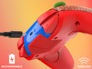 Dès le déballage, le design saisit. La façade avant arbore un effet lenticulaire unique : en bougeant la manette, l’image bascule entre deux visuels de Mario en pleine action, créant une impression de mouvement et de dynamisme. Cet effet « qui bouge avec vous » est surprenant et ajoute une réelle personnalité à l’accessoire. Cerise sur le gâteau : les étincelles qui s’échappent de Mario sont phosphorescentes. Après une exposition à la lumière, elles brillent dans l’obscurité, une touche ludique et inattendue qui ravit les fans.